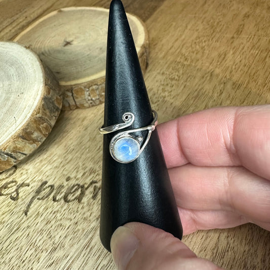 Bague argent 925 en Péristérite – Pierre de confiance, d’intuition et de réparation émotionnelle | (Modèle cercle sacré)