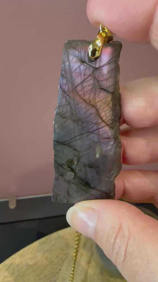Pendentif Labradorite BRUT – Protection, Intuition et Bouclier énergétique (REF 33)