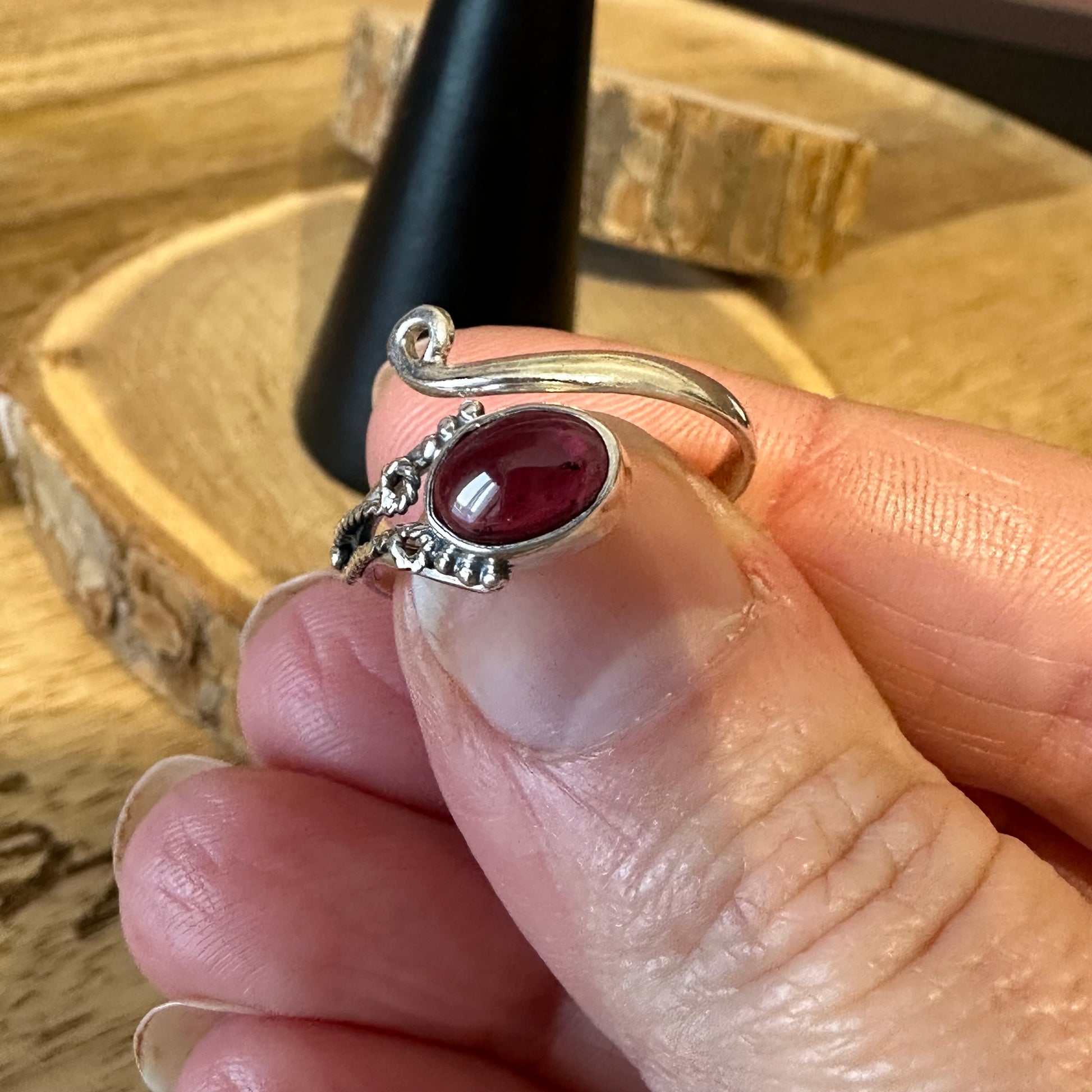 Bague Argent Grenat Rouge – Vitalité, Courage et Ancrage (Modèle corde céleste)