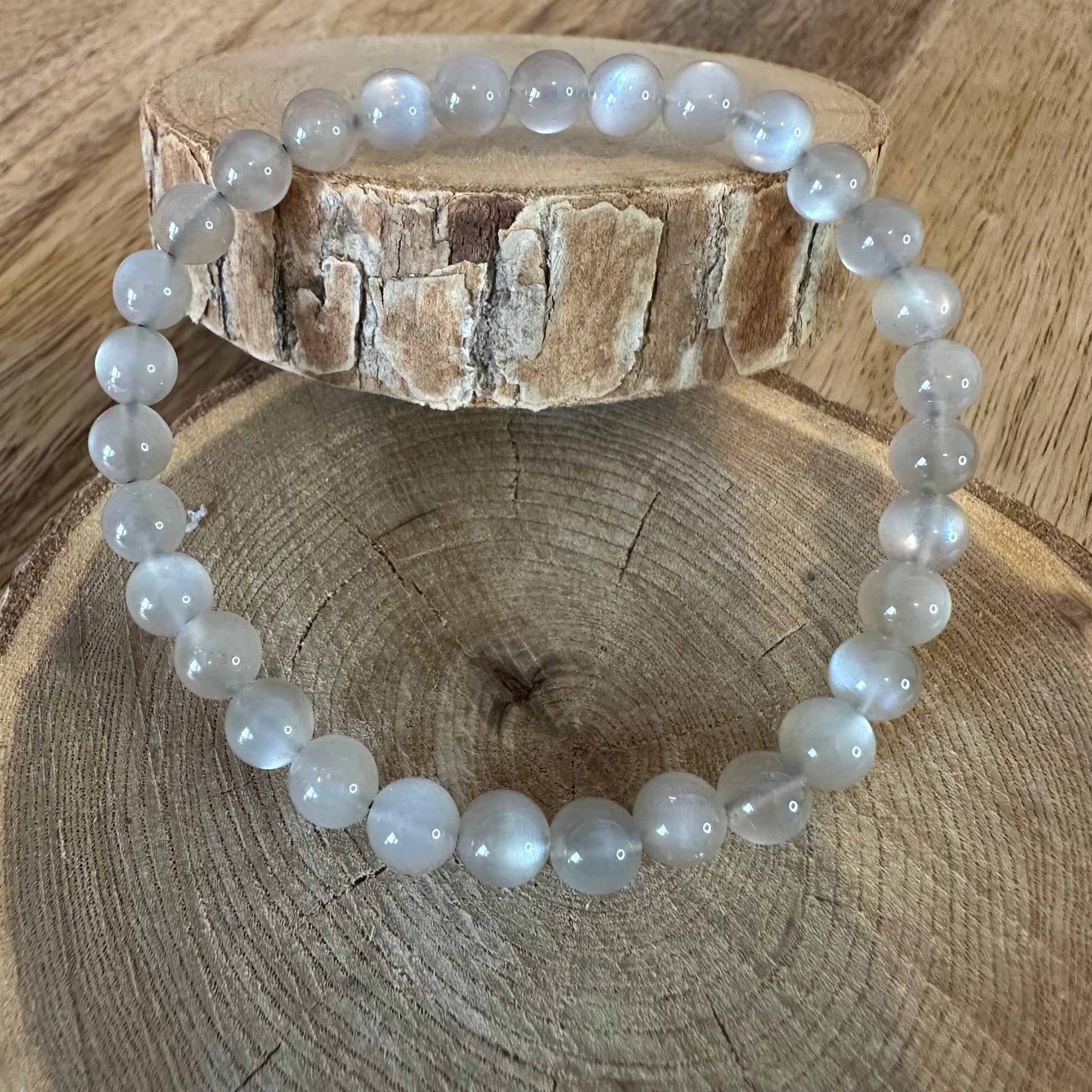 Bracelet Pierre de Lune Grise 6mm (Qualité AA+) – Équilibre, Féminité & Intuition
