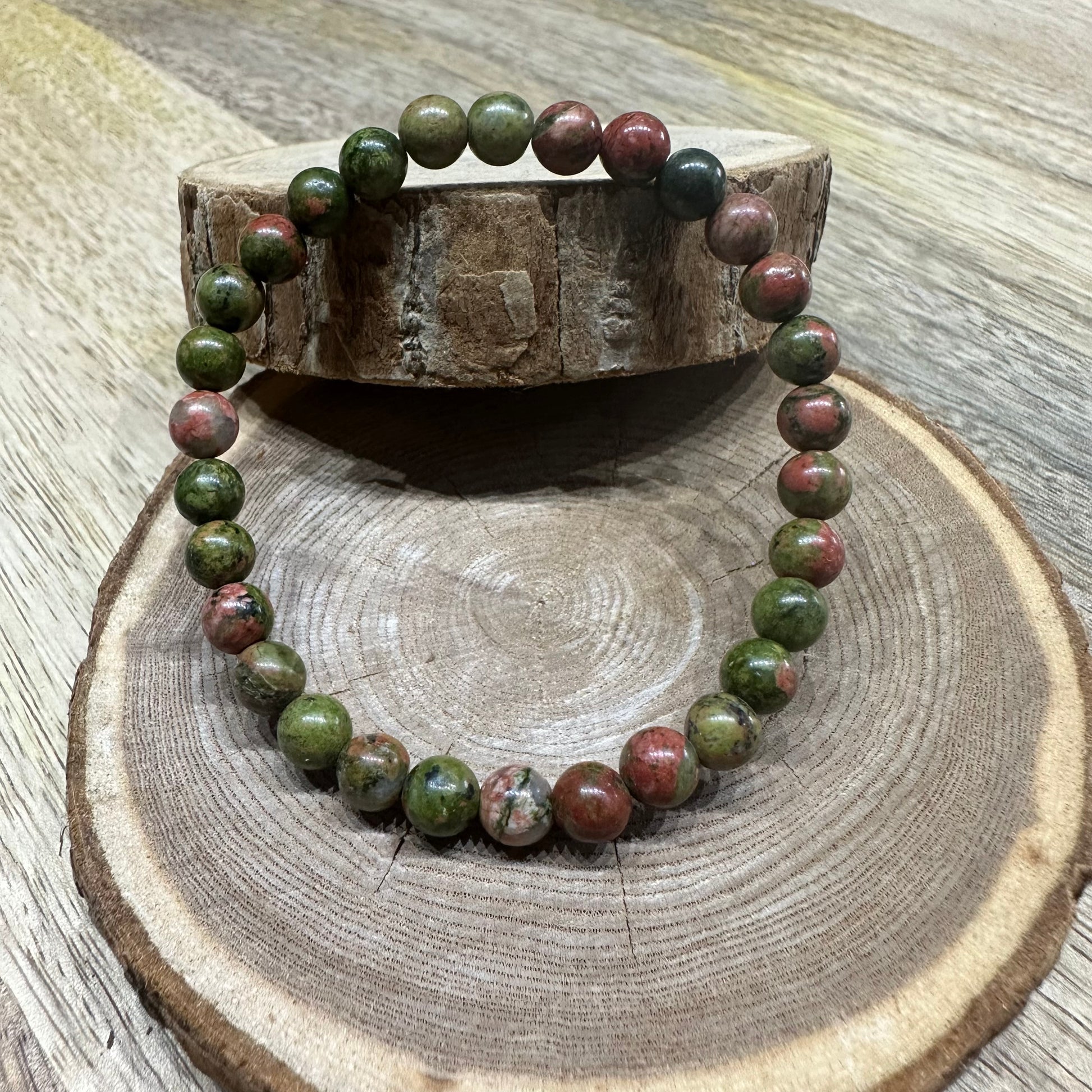 Bracelet Unakite 6mm – Guérison émotionnelle et soutien osseux (Qualité A)