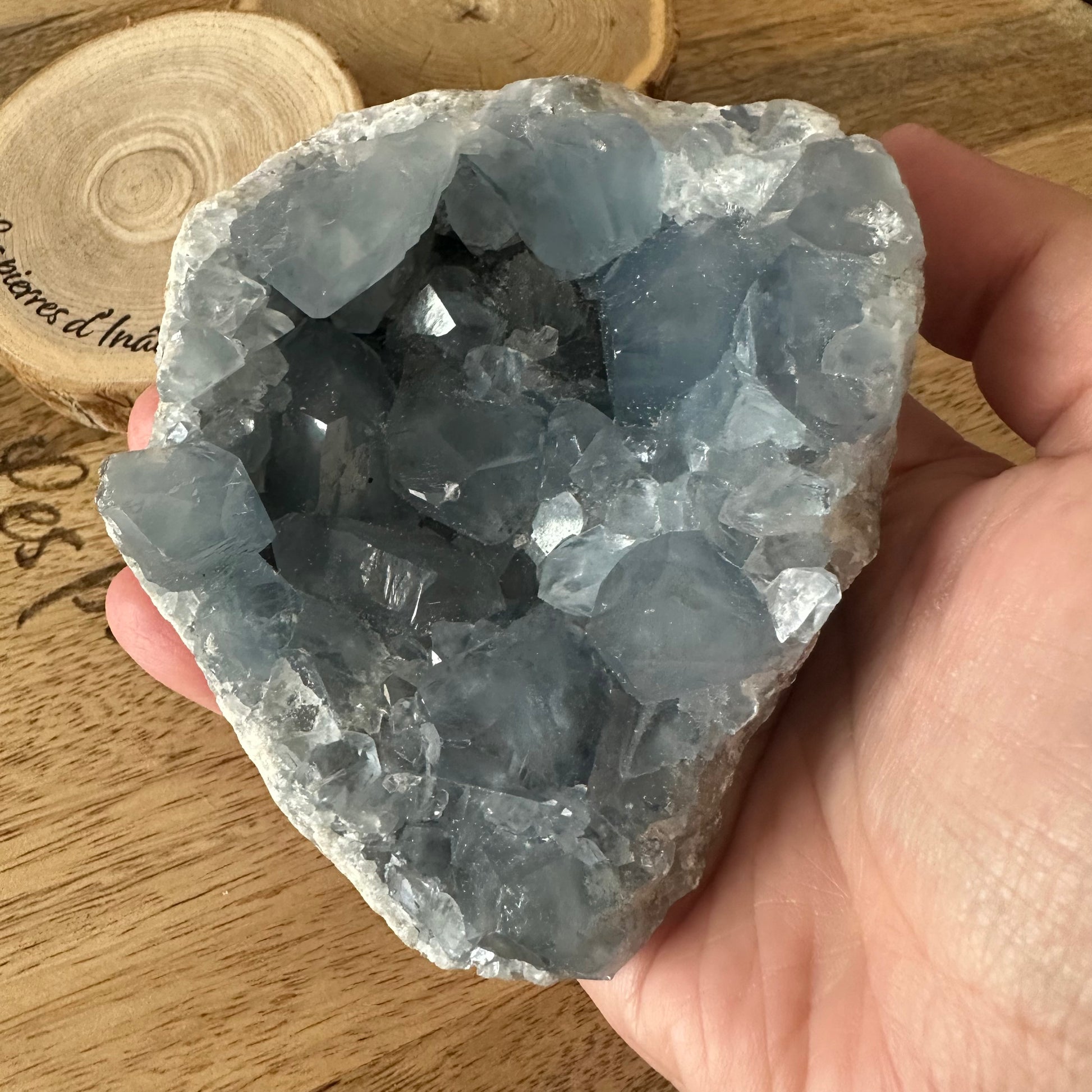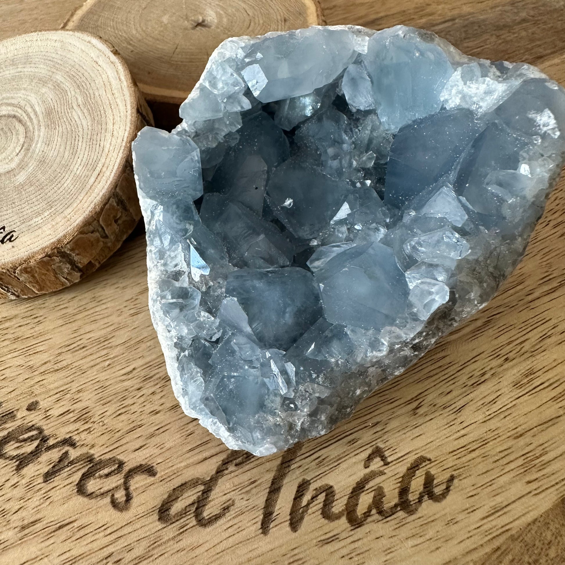 Plongez dans l’énergie apaisante de la Célestine, pierre naturelle liée aux chakras de la gorge et du cœur. Elle est idéal pour favoriser la communication, la sérénité et la confiance en soi.