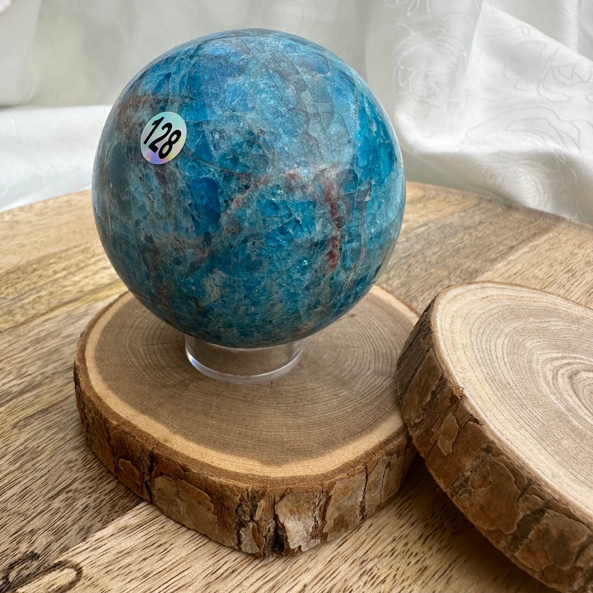 Sphère en Apatite Bleue – Pierre d’expression et de clarté intérieure | Réf. 128